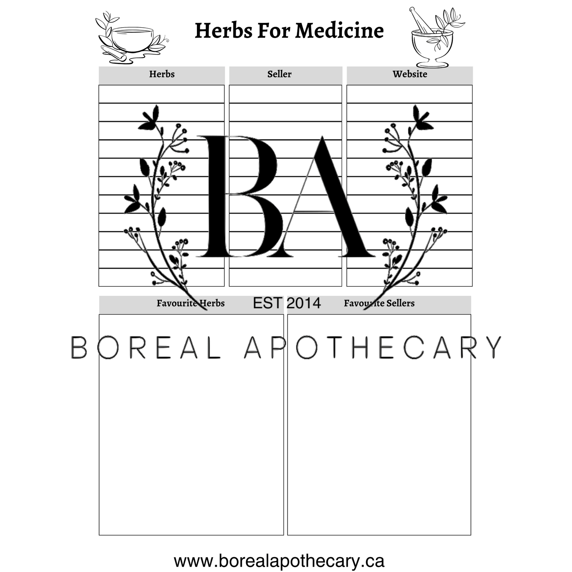 Herb Tracker, Tool Supply Sheet, & Medicinal Herb Log